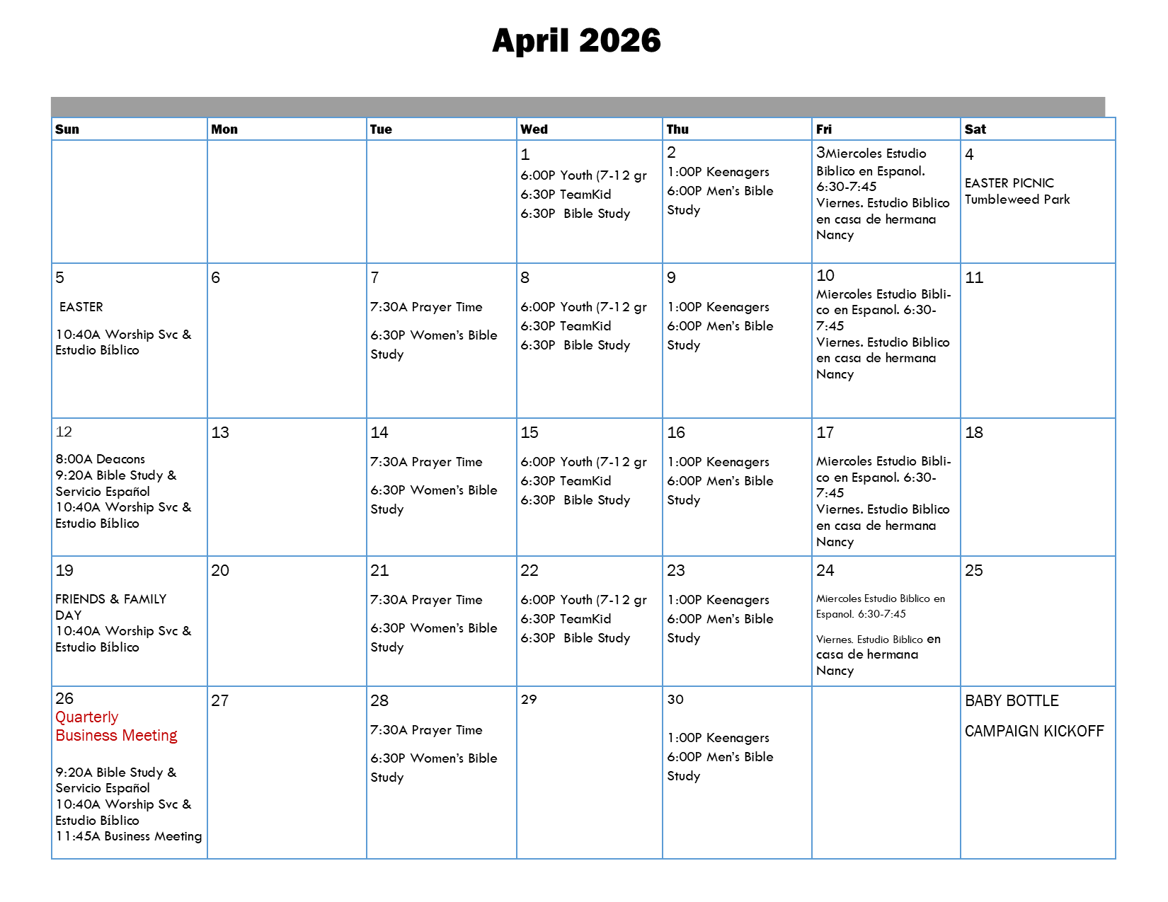 Los Grupos de Vida se juntan los Domingos a las 10:40AM. Si usted esta interesado en una clase, comuniquese con la oficina de la iglesia al 480-838-4040 o office@coronachandler.com para obtener mas informacion sobre como inscribirse en una clase.